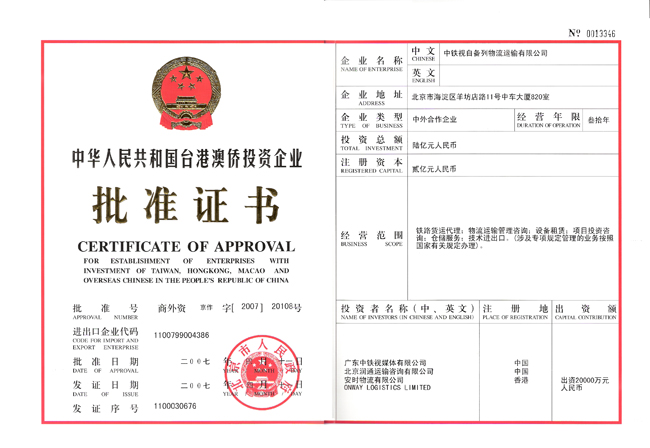 (23)《中华人民共和国台港澳侨投资企业批准证书》商外资京作字(2007)20108号