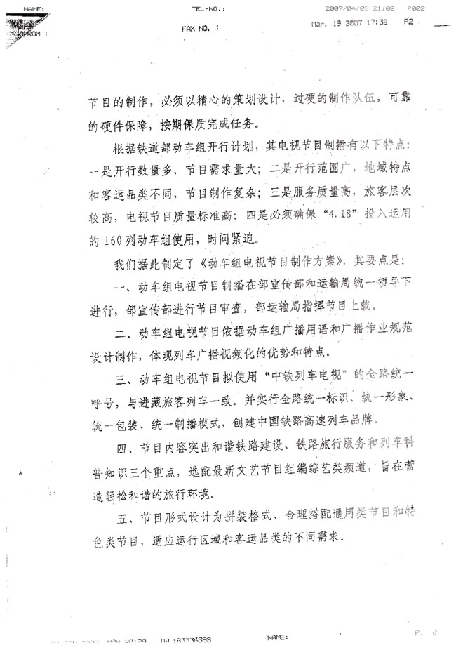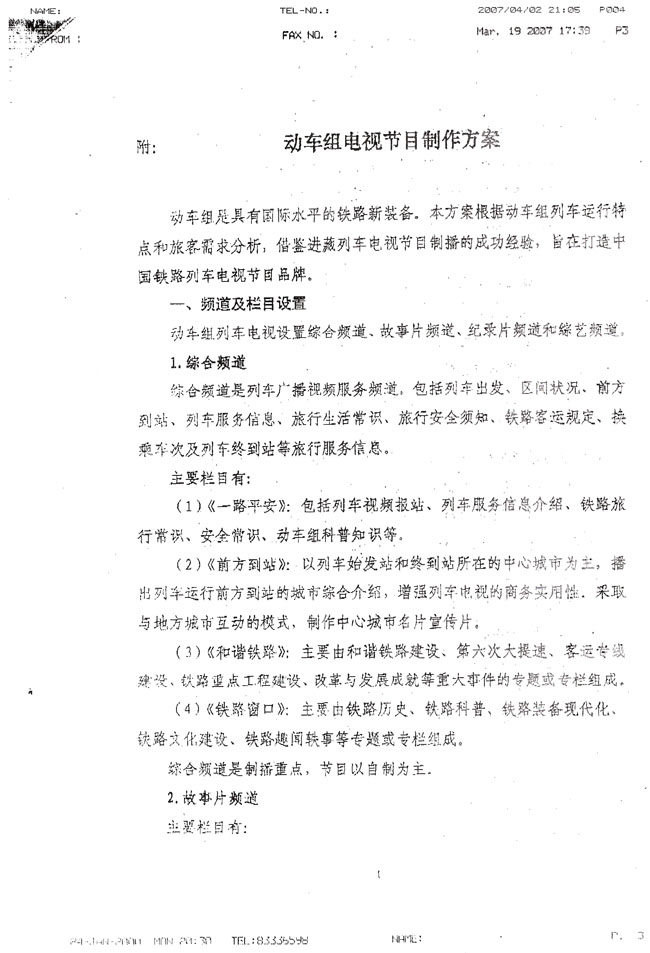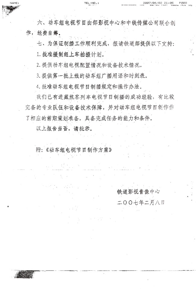 (16)《关于制作动车组电视节目报告》及铁道部领导的批示