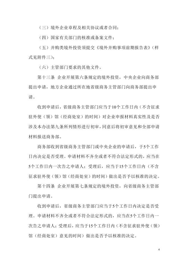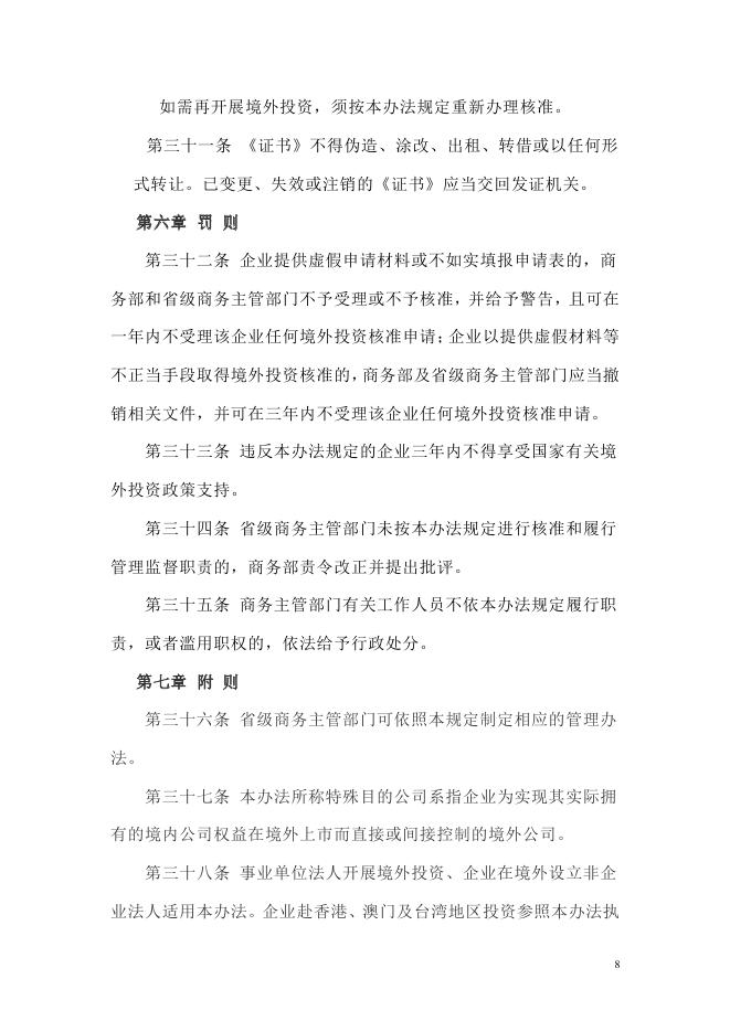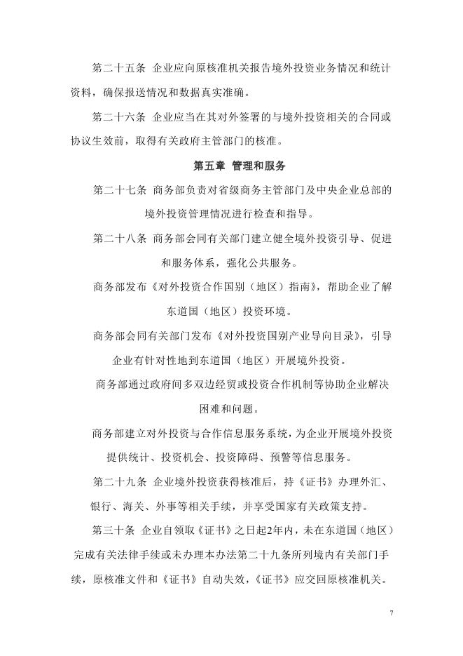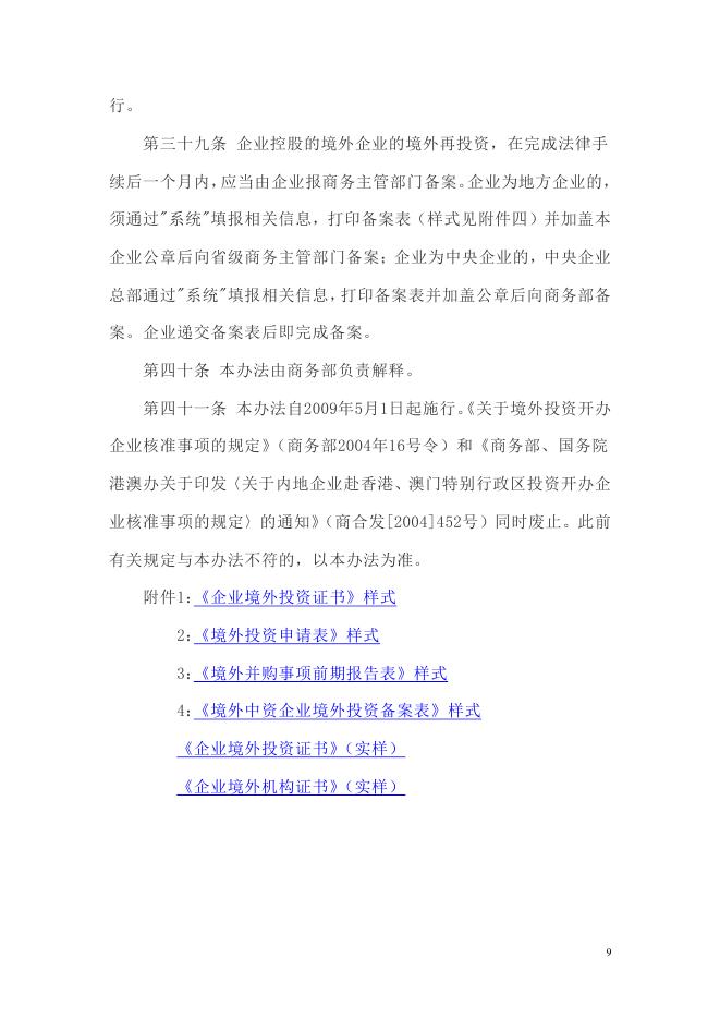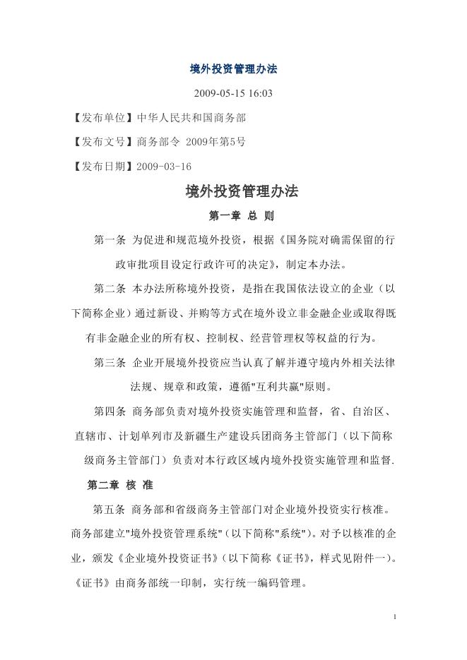 (16)商务部令,2009年第5号《境外投资管理办法》