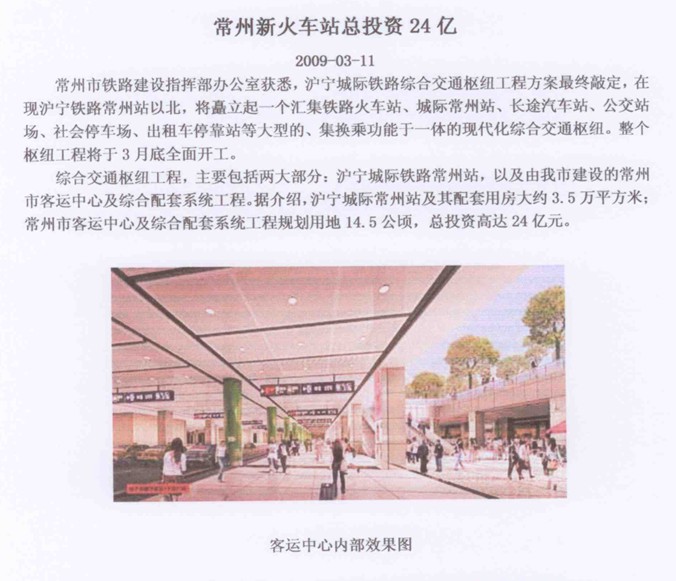 71、 常洲新火车站总投资24亿元