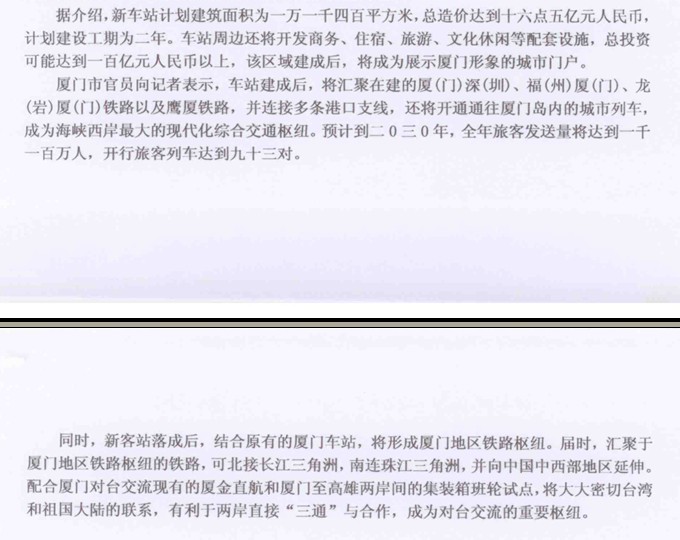 84、 厦门新火车站动工将成台湾和大陆交流重要枢纽