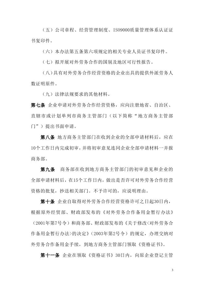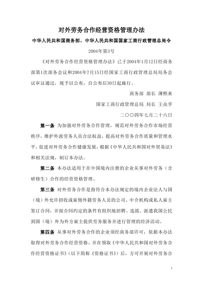 (30)商务部、工商总局令2004年第3号《对外劳务合作经营资格管理办法》