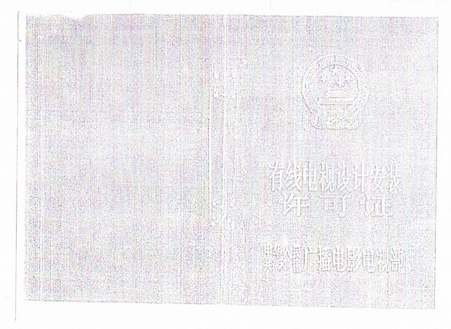 (4)广播电影电视部《有线电视设计安装许可证》许可证编号000001号