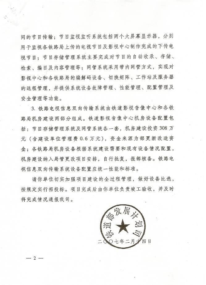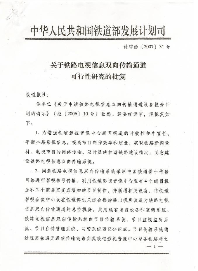 (12)铁道部发展计划司《关于铁路电视信息双向传输通道可行