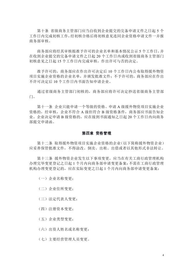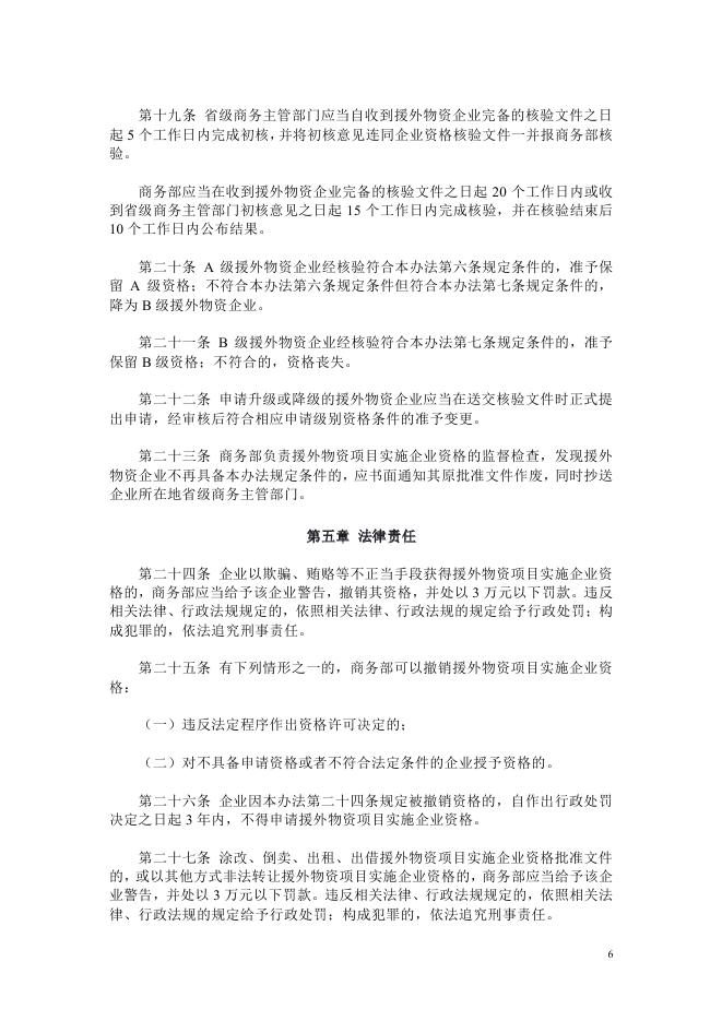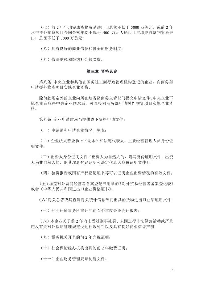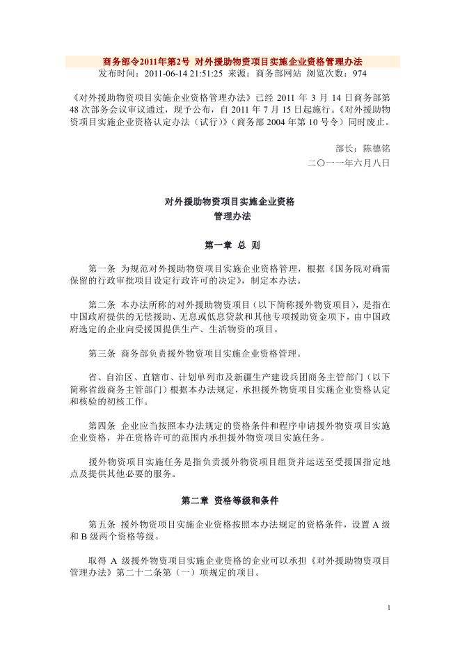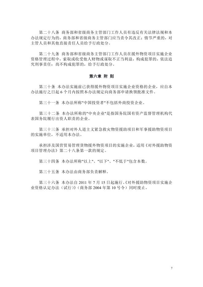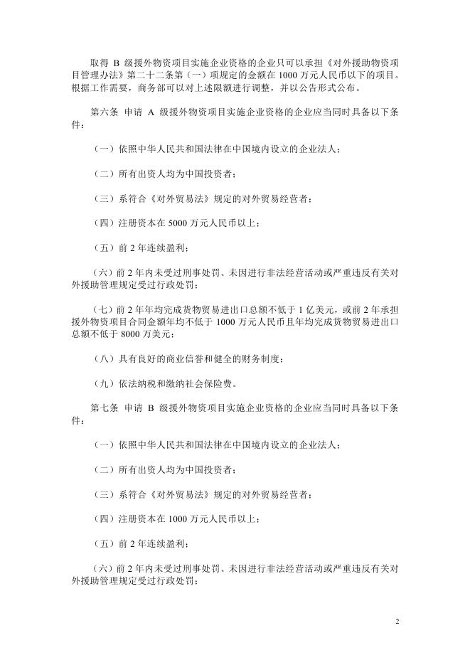(25)商务部令2011年第2号《对外援助物资项目实施企业资格管理办法》