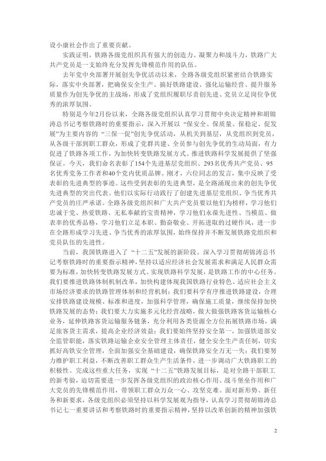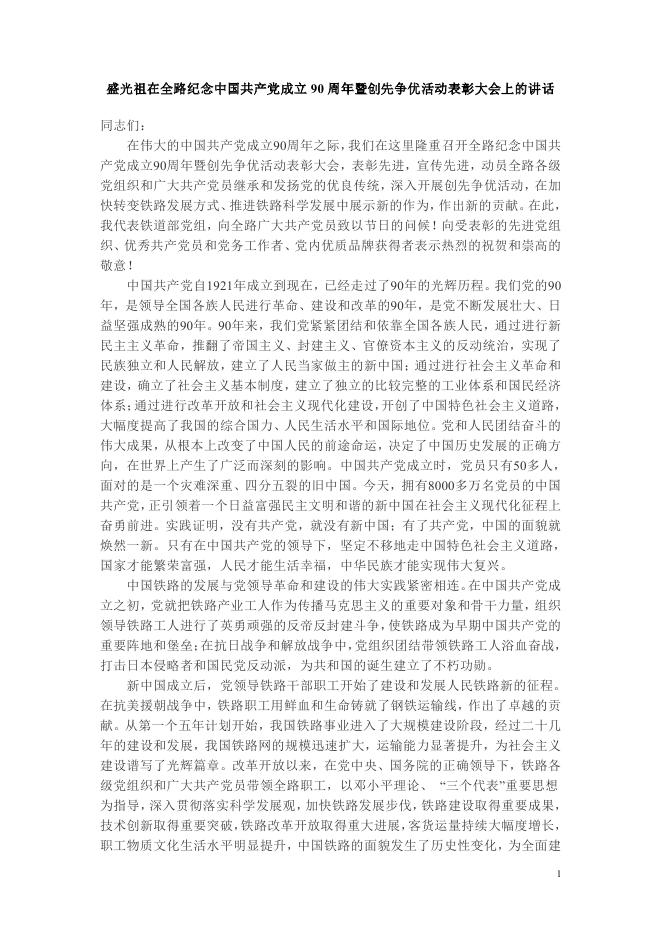 (9)盛光祖在全路纪念中国共产党成立90周年暨创先争优活动表彰大会上的讲话