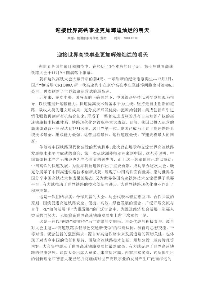 (17)迎接世界高铁事业更加辉煌灿烂的明天