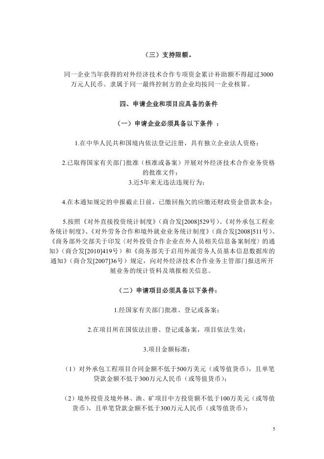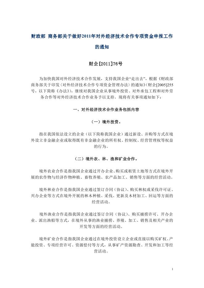 (20)财企(2011)76号《财政部、商务部关于做好2011年对外经济技术合作专项资金申报工作的通知》
