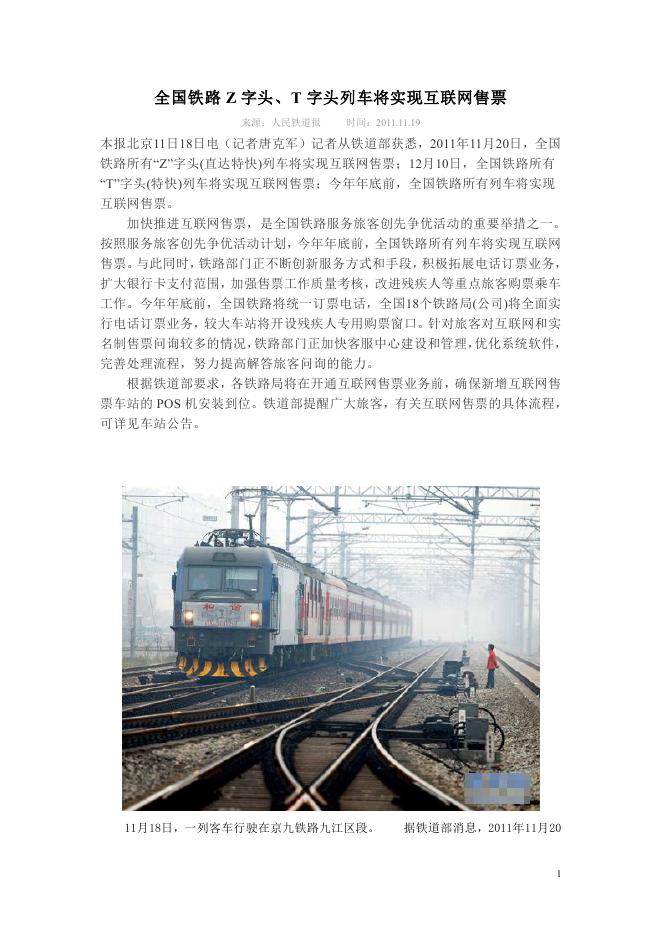 (12)全国铁路Z字头T字头列车将实现互联网售票