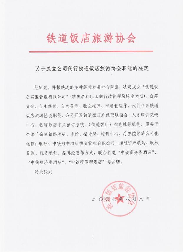 (26)铁道部饭店旅游协会《关于成立公司代行铁道饭店旅游协