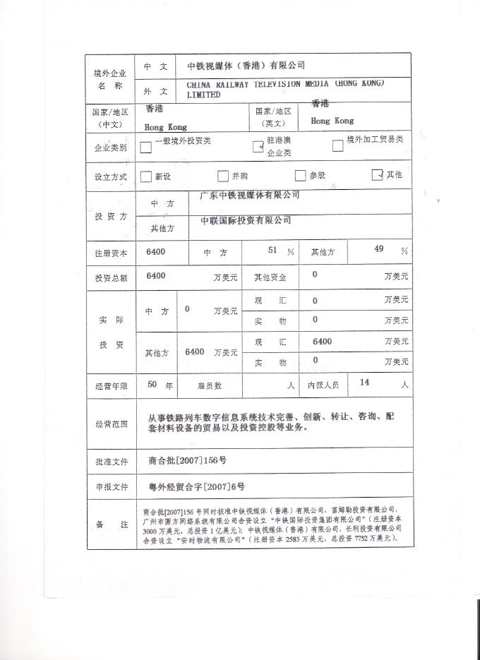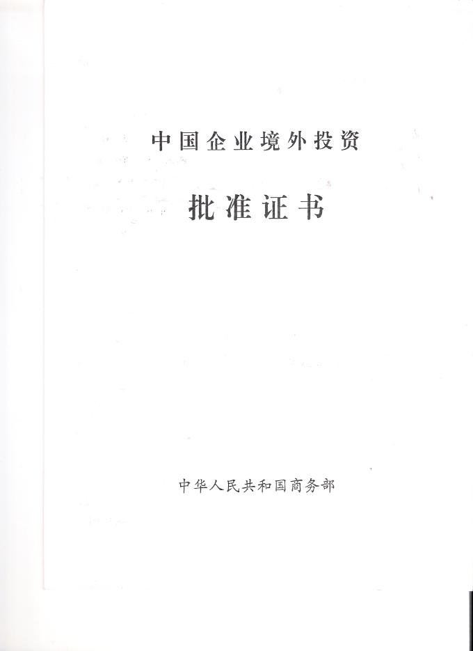(7)中华人民共和国商务部《中国企业境外投资批准证书》[2007]商合境外投资证字第000226号