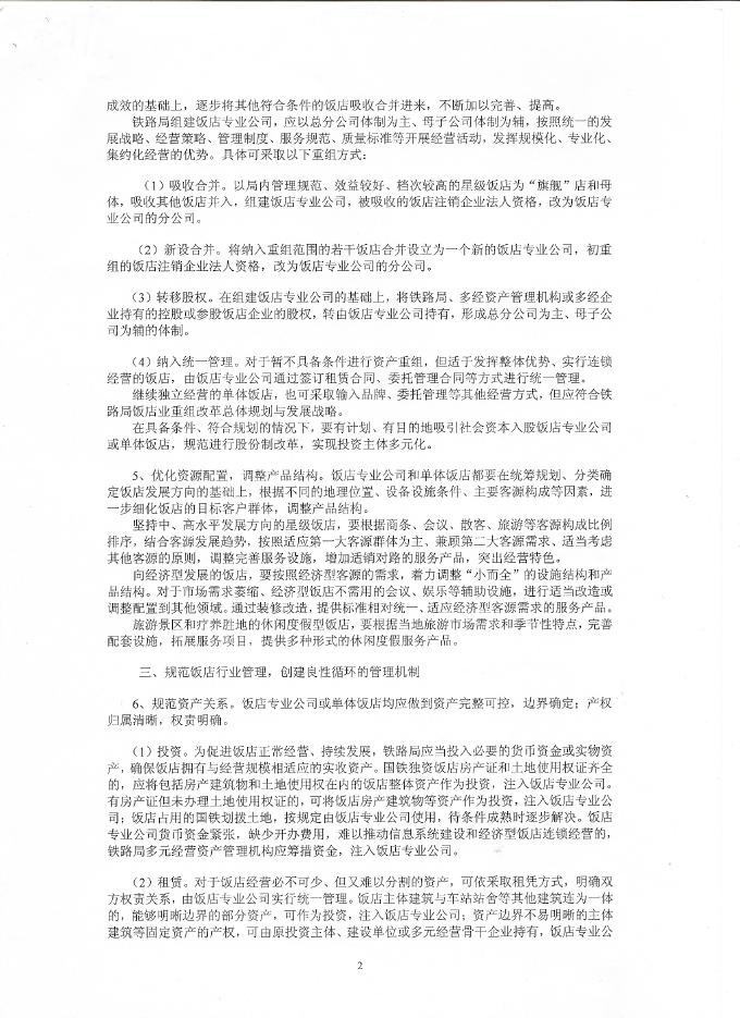 (9)2006年铁道部《关于推进铁路多元经营饭店业,规范管理改善经营的指导意见》