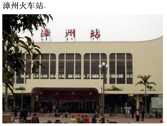 漳州站站址在福建省漳州市南坑路,邮政编码363000。建于1972年。离郭坑站11公里,隶属南昌铁路局福州办事处(原上海铁路局福州铁路分局)管辖。现为二等站。客运:办理旅客乘降;行李、包裹托运。货运:办理整车、零担、集装箱货物发到。