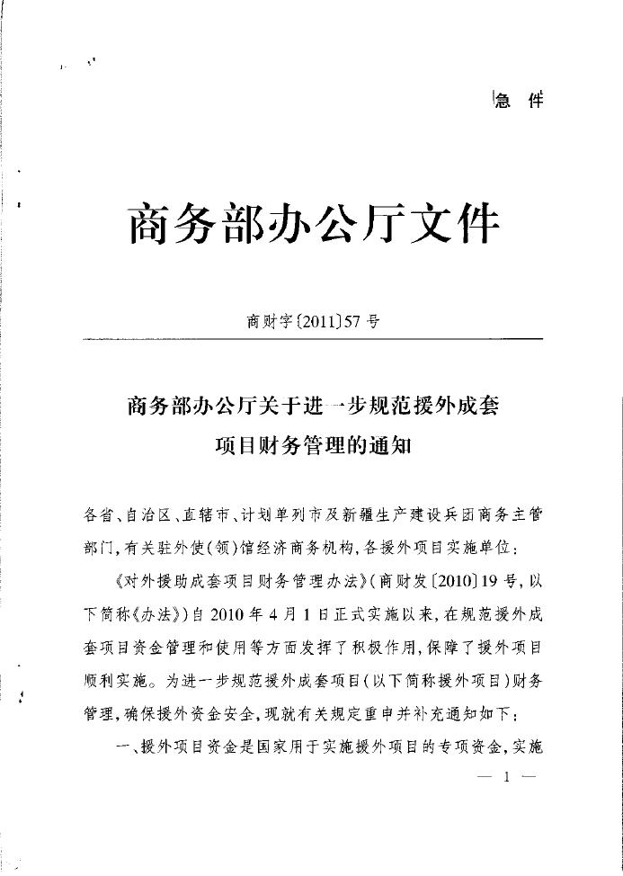 (26)商财字(2011)57号《商务部办公厅关于进一步规范援外成套项目财务管理的通知》