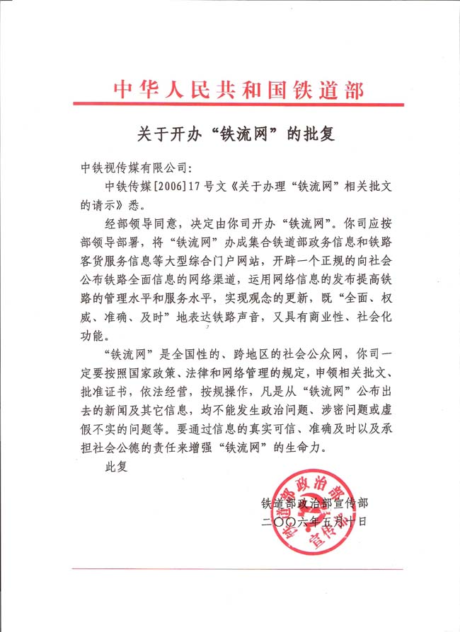 中铁多经投资集团有限公司所取得的铁道部广播电影电视部、文化部、中宣部等部门的有关批文、领导批示