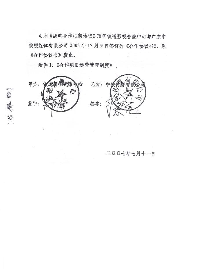 (11)铁道部铁道影视音像中心与中铁传媒有限公司《战略合作