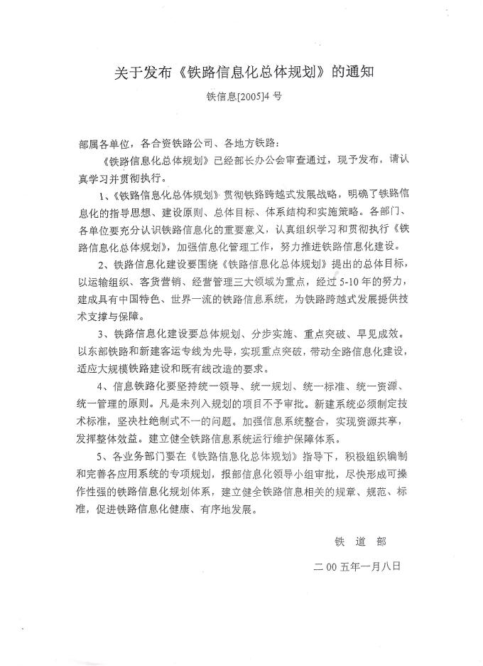(25)《关于发布(铁路信息化总体规划)的通知》“铁信息(2005)