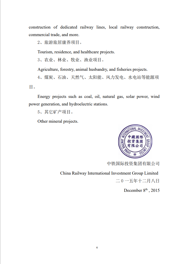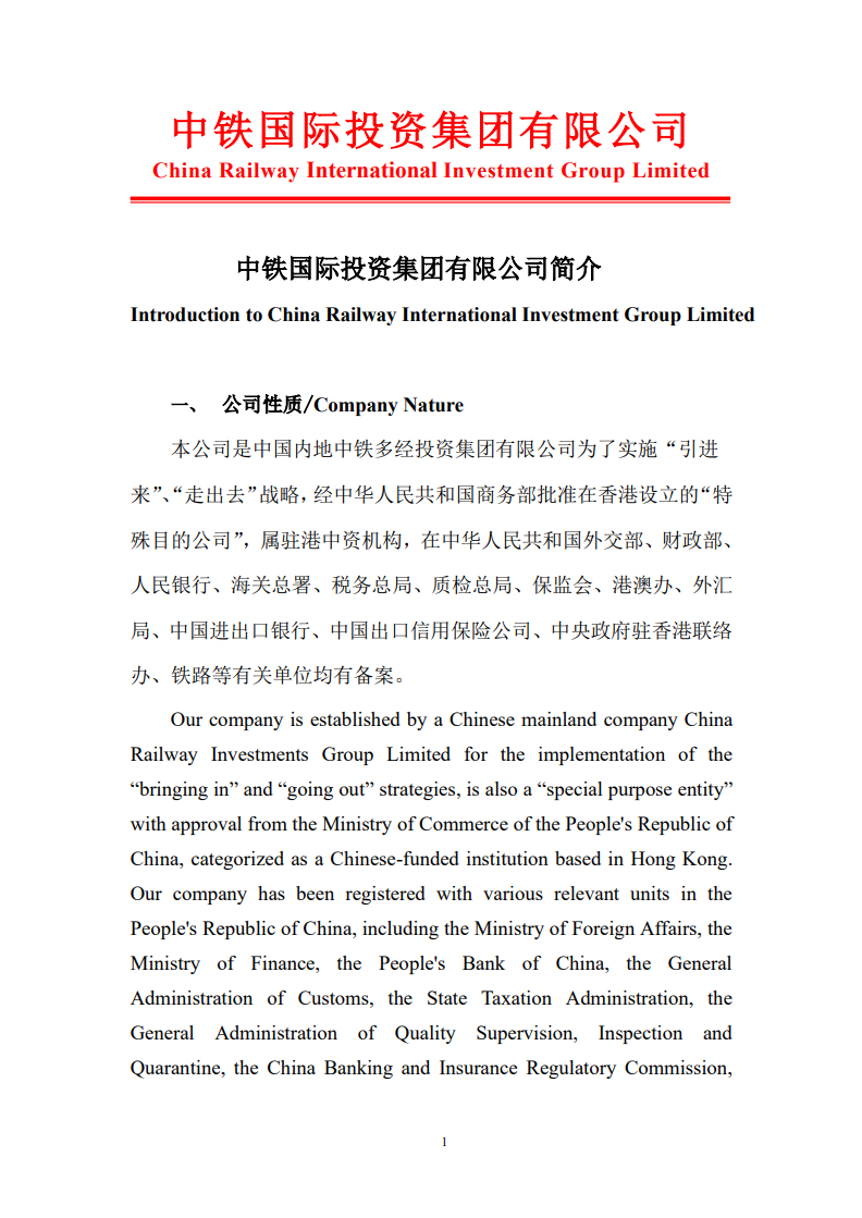 中铁国际投资集团有限公司简介(中英文)