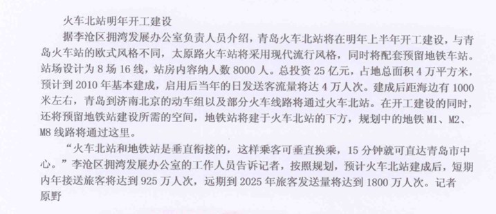 79、 青岛火车站将在明年开工建设